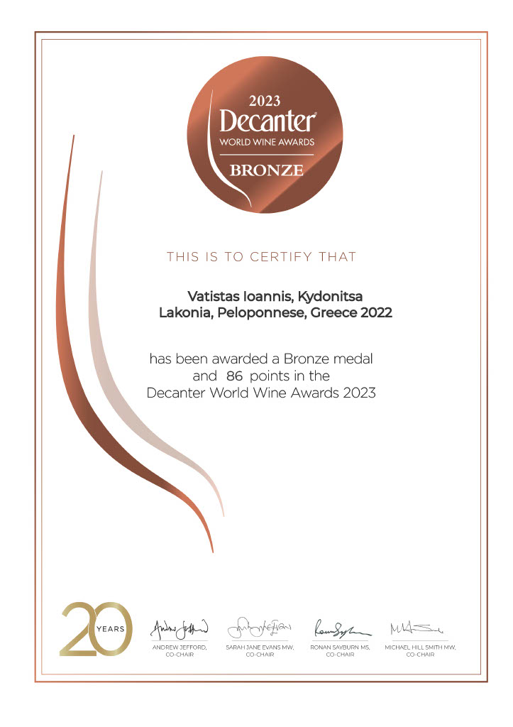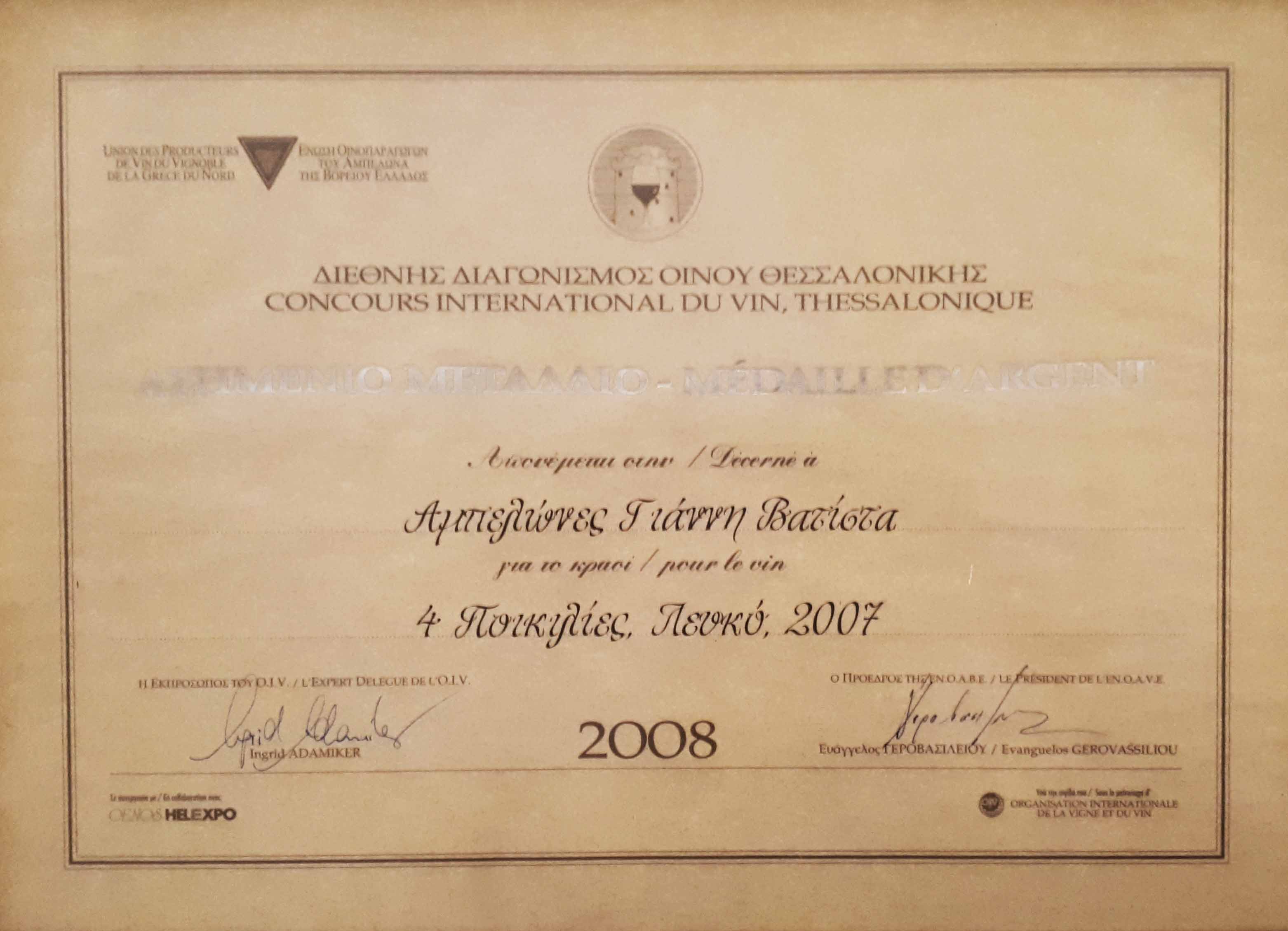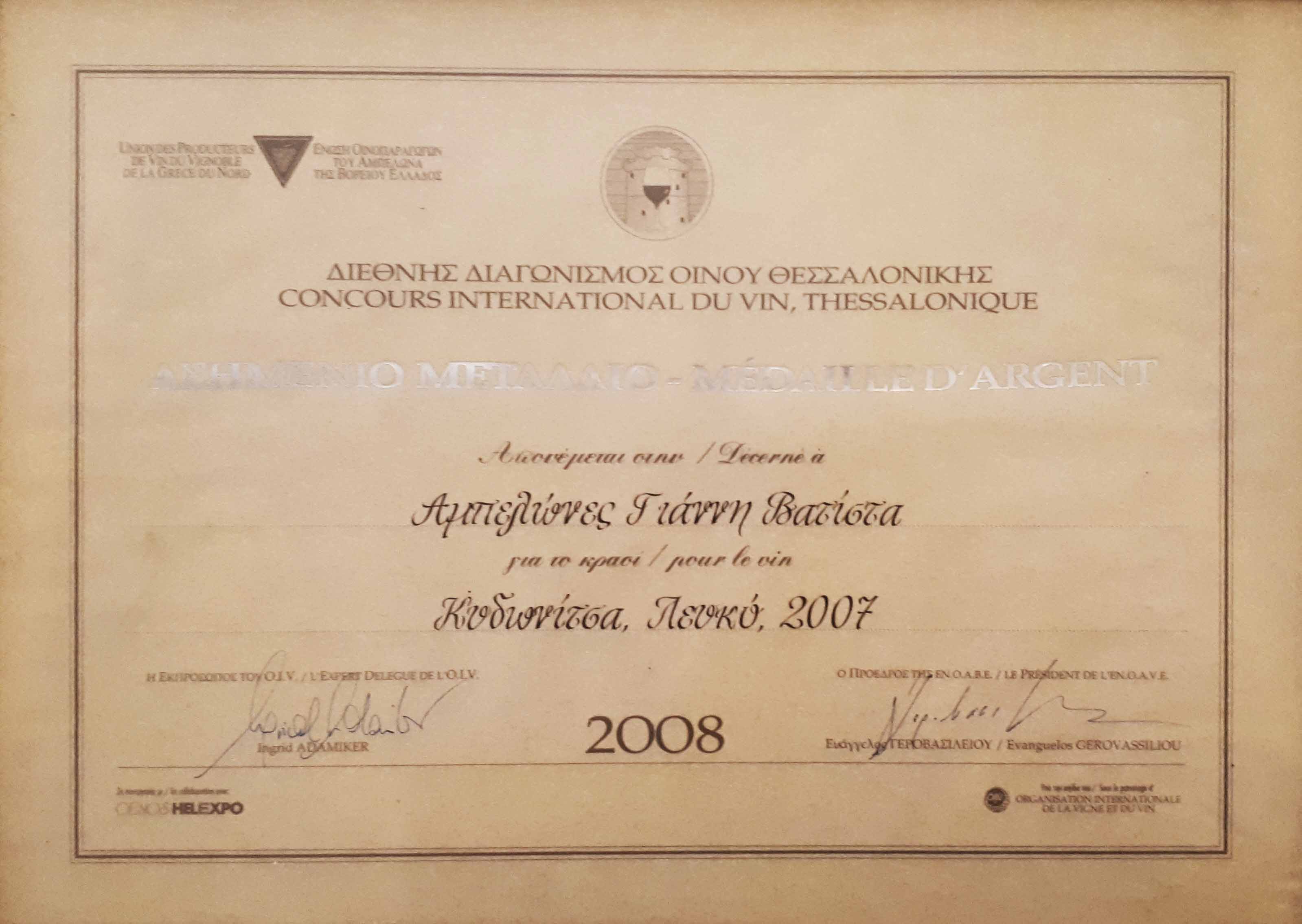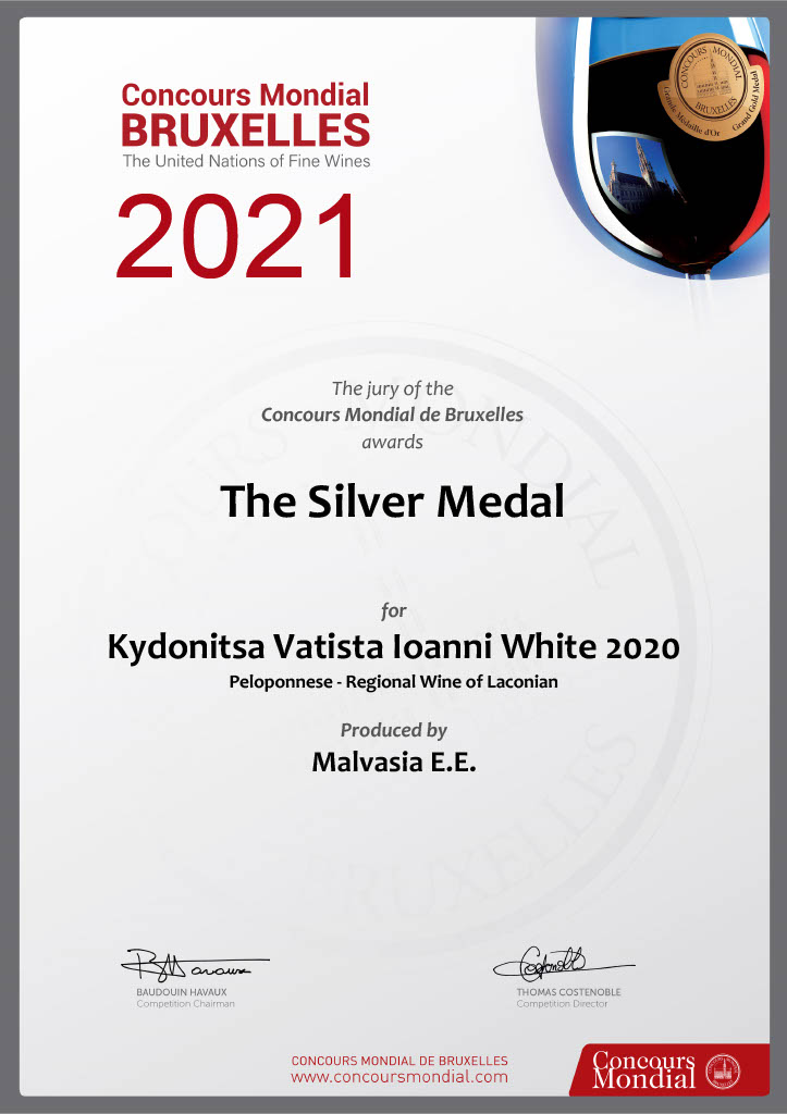 Ένα αρωματικό και φρουτώδες λευκό κρασί από τις ποικιλίες Μαλαγουζιά, Κυδωνίτσα, Ασύρτικο και Πετρουλιανό. Μπουκέτο τροπικών φρούτων όπως γκρέιπφρουτ αλλά και ανθικά στοιχεία χαμομηλιού. Γεμάτο στόμα και μακρά δροσερή επίγευση. Συνοδεύει ασρμονικά ριζότο, λευκά ψάρια, σκληρά τυριά και λευκά κρέατα. Σερβίρεται στους 9-10 C