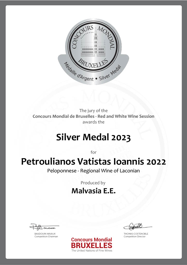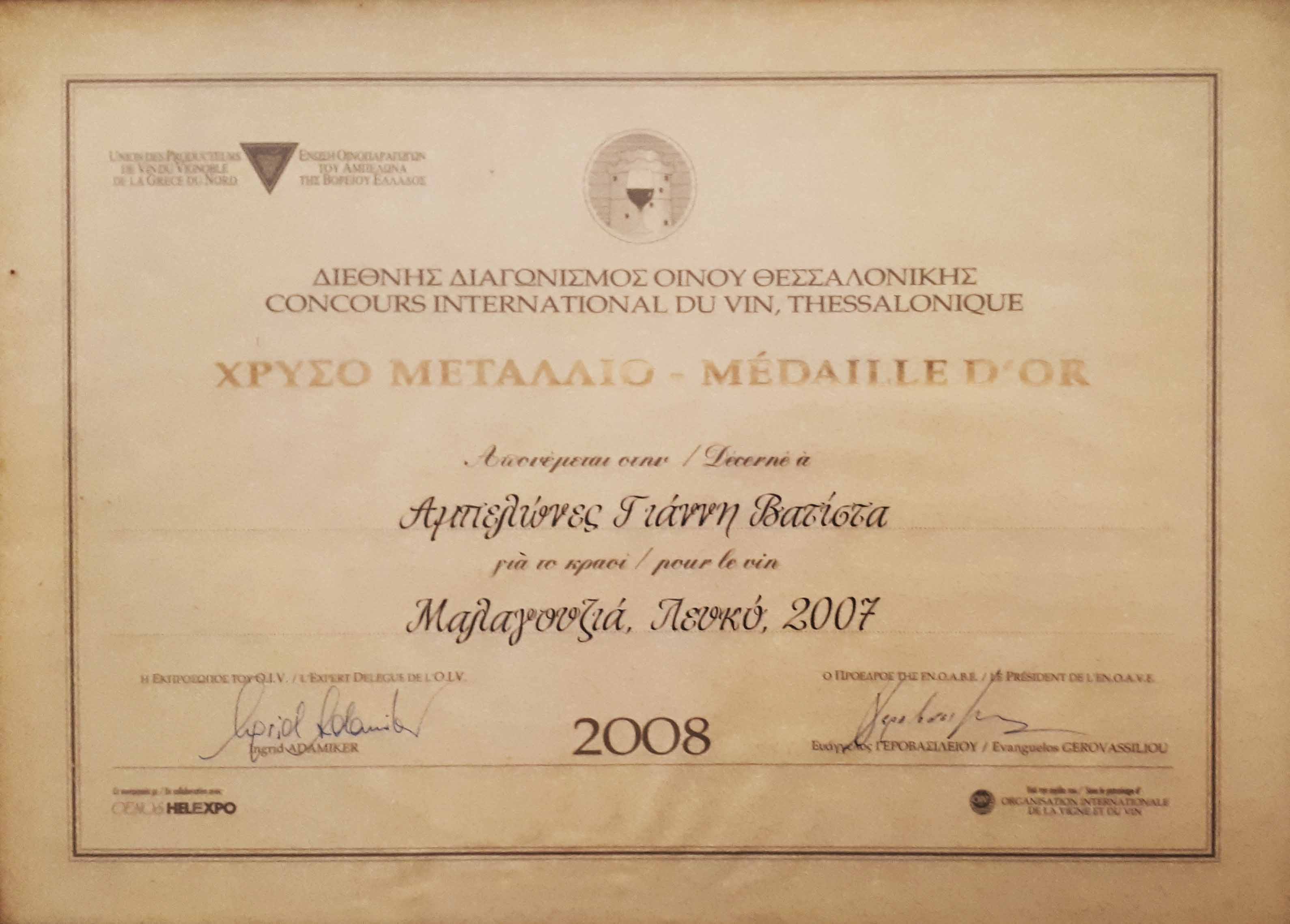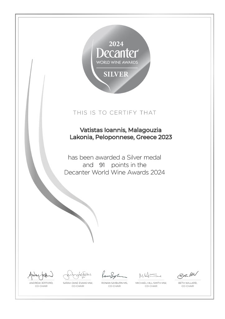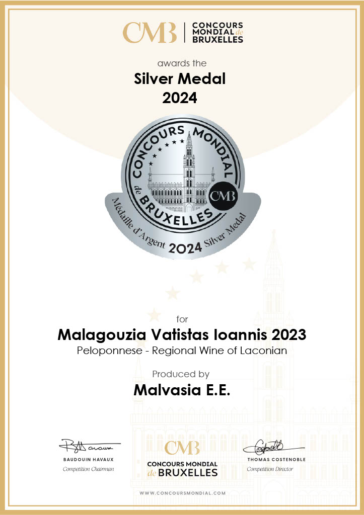 Δροσερή Μαλαγουζιά με χρυσοκίτρινο χρώμα. Νότες λευκών ανθών και πυρηνόκαρπων φρούτων όπως βερύκοκο. Πλούσια γεύση στο στόμα γεμάτη αρώματα κίτρου. Συνοδεύει άριστα δροσερές σαλάτες, ζυμαρικά με ελαφριά λευκή σάλτσα και θαλασσινά. Σερβίρεται στους 9-10ºC.